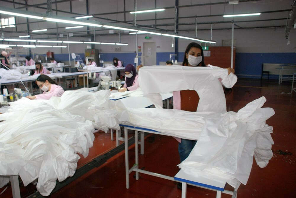 Tokat'ın Turhal ilçesinde; kaban, ceket, pantolon üretimi yapan bir tekstil fabrikası artan talep doğrultusunda giysi üretimini durdurup, tek kullanımlık tulum üretmeye başladı.