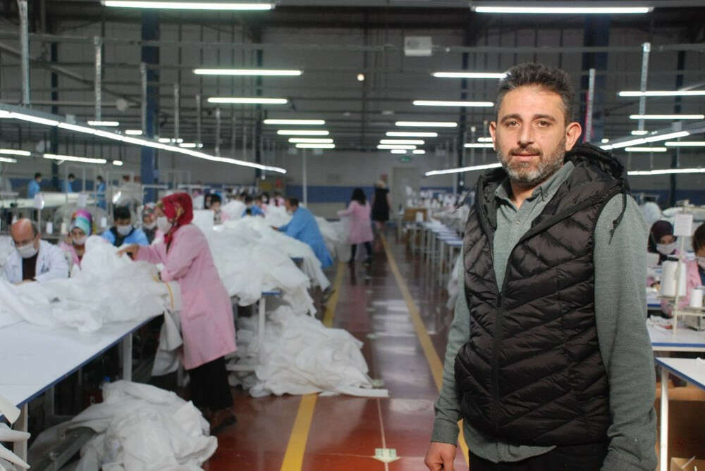 Tekstil Fabrikası Yöneticisi İsa Aktaş, corona virüsünden korunma kıyafeti olarak adlandırdıkları tuluma Çin'den oldukça fazla talep olduğunu kaydetti.