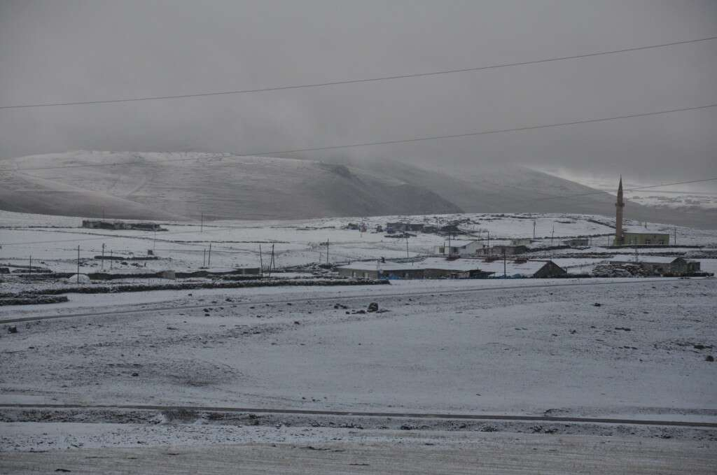 Kars'ın yüksek kesimlerinde sabaha kadar yağan kar etrafı beyaza bürüdü.