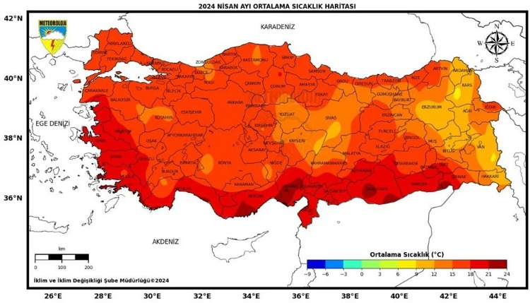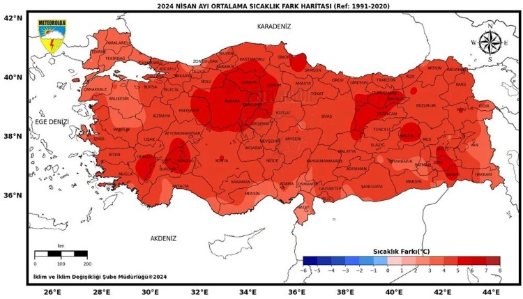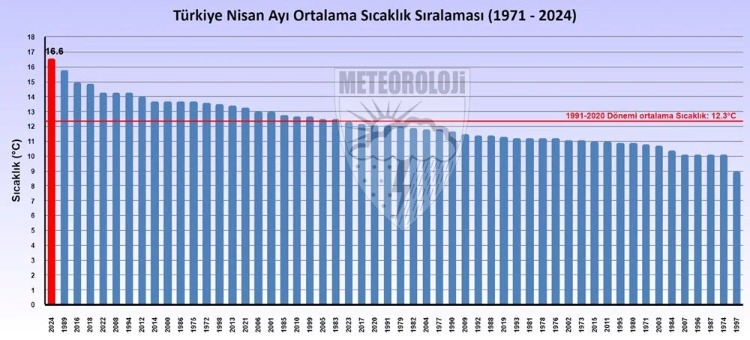 Meteoroloji Genel Müdürlüğü 2024 Yılı Nisan Ayı Ortalama Sıcaklıklarının 1991-2020 Normallerine Göre Mukayesesi Raporu açıklandı. 2024 yılı nisan ayında ortalama sıcaklıklar Türkiye genelinde mevsim normallerinin üzerinde gerçekleşti.