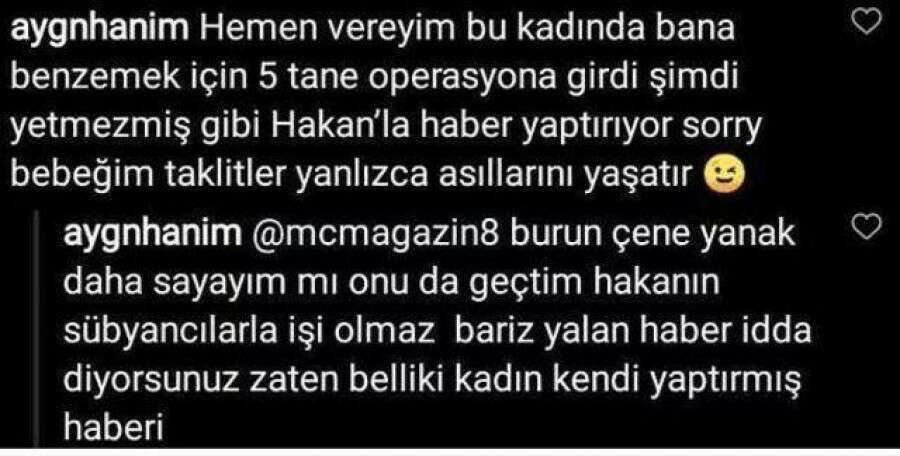 "BANA BENZEMEK İÇİN..." Kıskançlık krizine giren Aygün Aydın önce, "Hakan'ın sübyancılarla işi olmaz" diyerek yaşı kendisinden küçük olan Onur Bay ile bir süre aşk yaşayan Dilara Aksüyek'i hedef aldı.