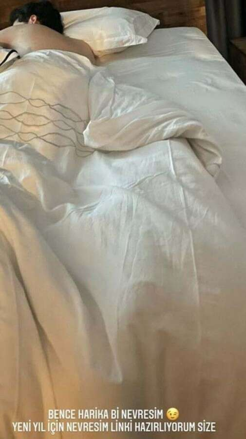 Aydın, paylaştığı fotoğrafın altına, "Bence harika bir nevresim. Yeni yıl için nevresim linki hazırlıyorum size." notunu düştü.