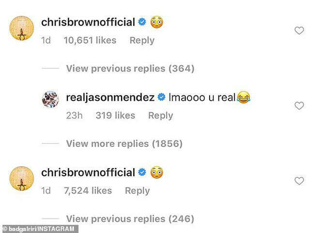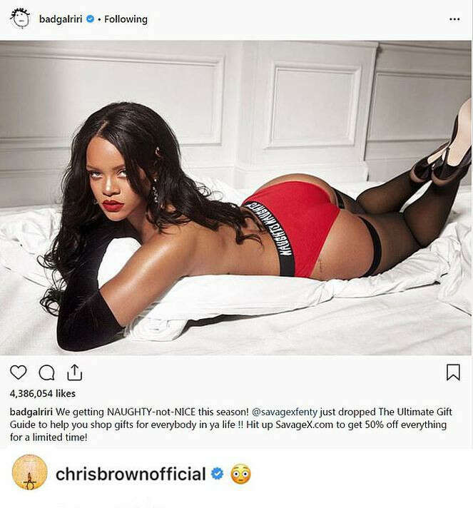 Brown, Rihanna'nın, iç çamaşırı koleksiyonunu tanıtmak için paylaştığı fotoğrafların altına yorum yaptı.