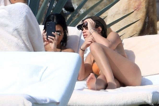 İkili, güneşlenirken bol bol sohbet etti. Hatta Sofia, cep telefonundaki bazı şeyleri heyecanla Kourtney'e gösterirken objektiflere takıldı.