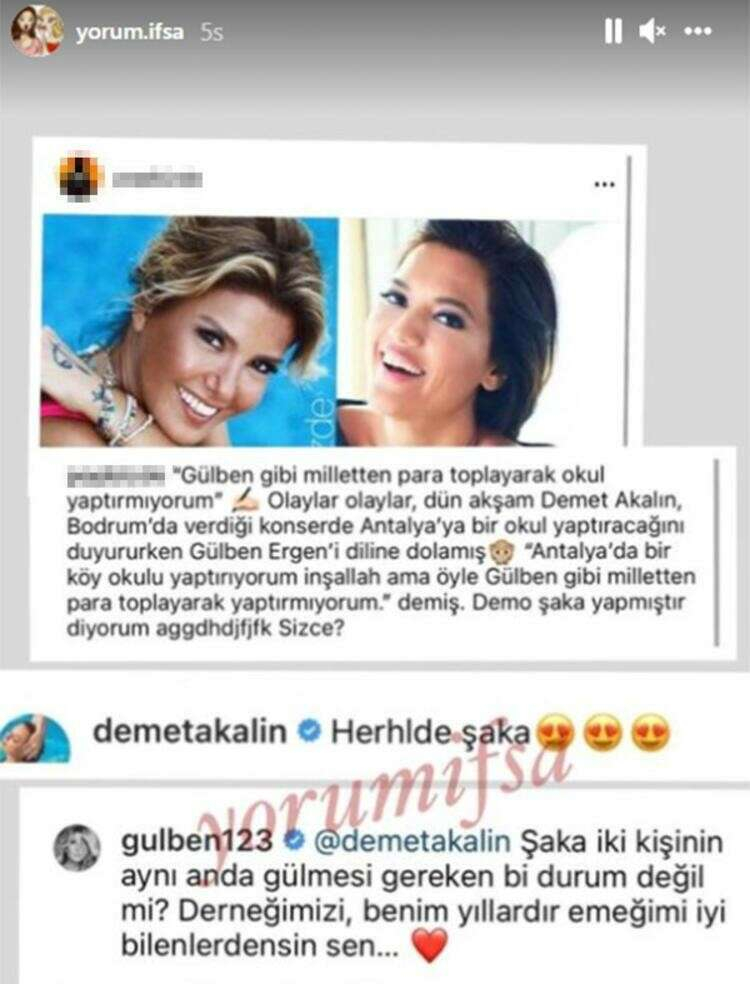 Ünlü şarkıcı, söz konusu paylaşımın altına "Herhalde şaka" yorumunda bulundu. Gülben Ergen ise Akalın'ın 'şaka' savunmasına dikkat çeken bir cevap verdi.