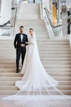 Yasemin Şefkatli, Özgür Masur imzalı bir gelinlik giydi. İdo Tatlıses'in damatlığını ise Faruk Saraç hazırladı.