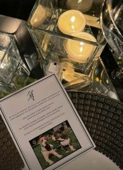 «12345678910» Çift, geceye katılan davetliler adına hayvanlar için mama bağışında bulundu. Bağışın belgesi masalarda yerini aldı.