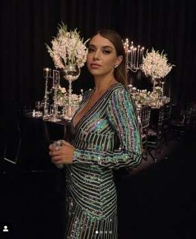 Özlem Ada Şahin göğüs dekolteli elbise tercih etti.
