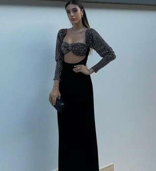 Emel Yıldırım, düğüne derin bacak ve göğüs dekolteli siyah bir elbise tercih etti.