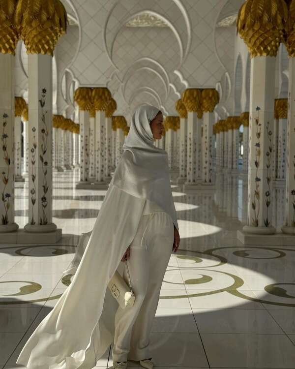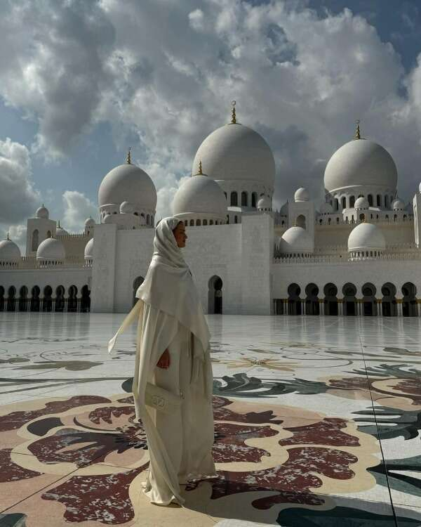 Rosie Huntington Whiteley paylaşımına "Abu Dabi'deyken Şeyh Zayed Ulu Camii'ni gezmek büyük bir onur..." notunu düştü.