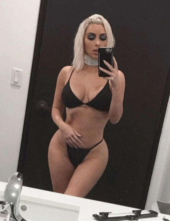 Siyah iç çamaşırıyla ayna karşısına geçen Kardashian bu pozunu " Dün gece bunu paylaşmayı unuttum" notuyla paylaştı.