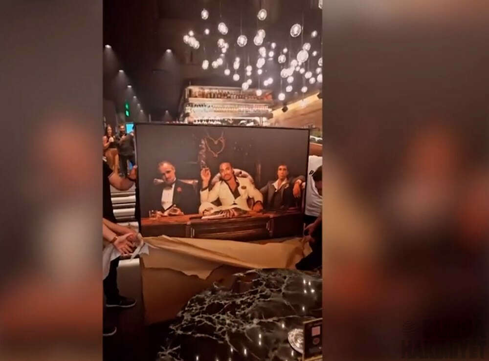 Gökçe'nin Scarface filminde Al Pacino'nun hayat verdiği Tony Montana karakteri ve Baba filminde Marlon Brando'nun canlandırdığı Vito Corleone karakteriyle birlikte yer aldığı bir tablo da restorana asıldı.