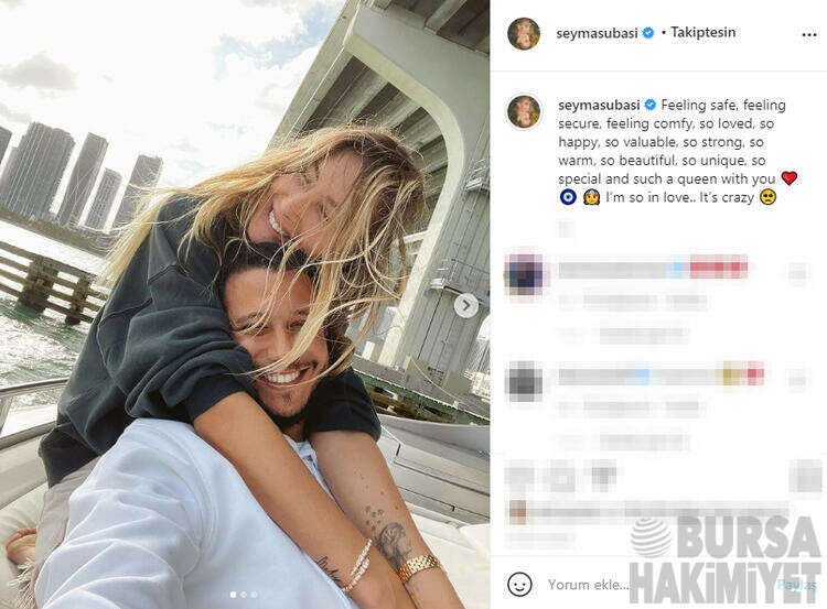 Sevgilisine sarıldığı yeni fotoğrafları "Güvende hissediyorum. Çok seviliyorum. Seninle kraliçe gibiyim. Aşığım" mesajıyla paylaşan Subaşı, takipçilerinden binlerce beğeni ve yorum aldı.