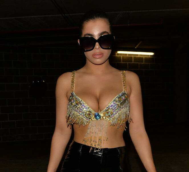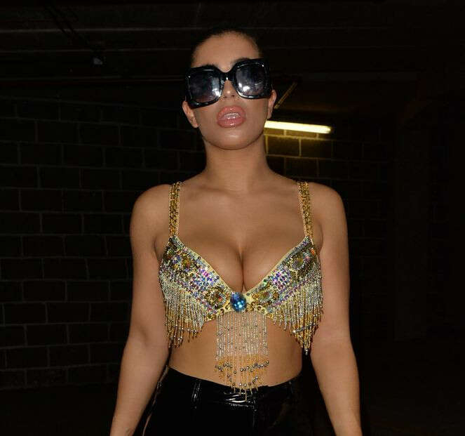 Liverpool doğumlu 22 yaşındaki güzel, bol işlemeli bir büstiyer ve siyah skinny jeans tercih etmişti.