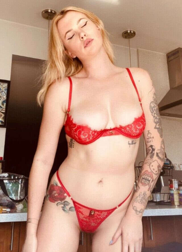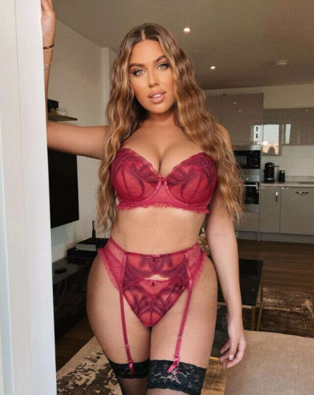 Bianca Christine McGuinness koyu kırmızı iç çamaşırlarıyla vücudunu ön plana çıkardı.