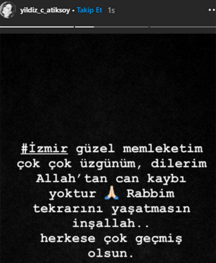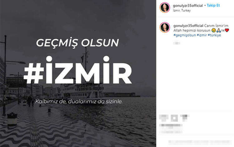 Tüm Türkiye'yi derinden sarsan İzmir depremiyle ilgili ünlüler de yaşadıkları korku ve üzüntüyü sosyal medya hesapları üzerinden dile getirdi.