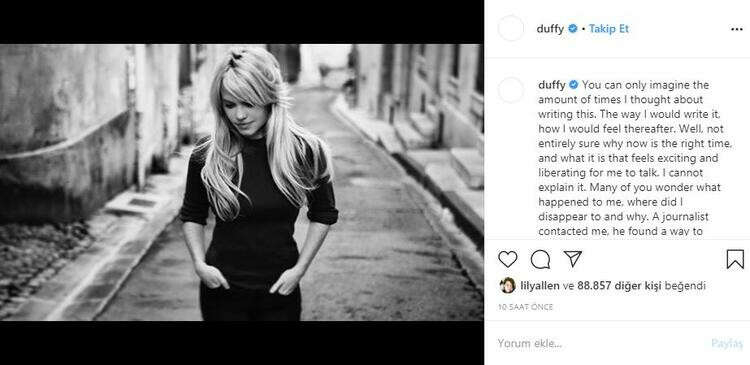 Duffy, 80 bini aşkın takipçisi olan Instagram hesabından ilk paylaşımını yaparak şunları yazdı: