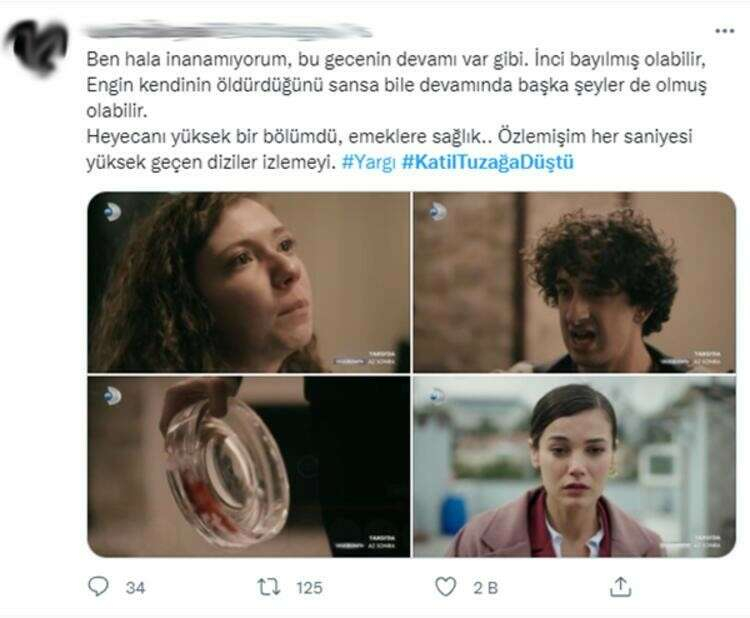 VE İŞTE KATİL Oyun kurdukları yerde bekleyen Ceylin ve Ilgaz ise taksiden inip parayı getiren kişinin Engin olduğunu gördü. Böylece Yargı'da haftalardır büyük bir heyecanla beklenen katilin Engin Tilmen olduğu ortaya çıktı. Sosyal medyada yaşananlara yorum yağdı.