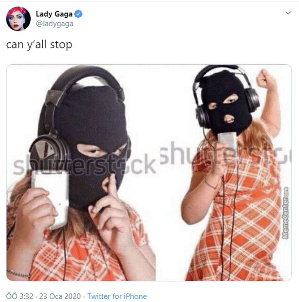 Bütün bu tartışmalar arasında Lady Gaga, müzik dinleyen ve eliyle sus işareti yapan maskeli bir kız stok fotoğrafını sosyal medya hesabından paylaşarak, "Hepiniz susabilir misiniz?" notunu yazdı.