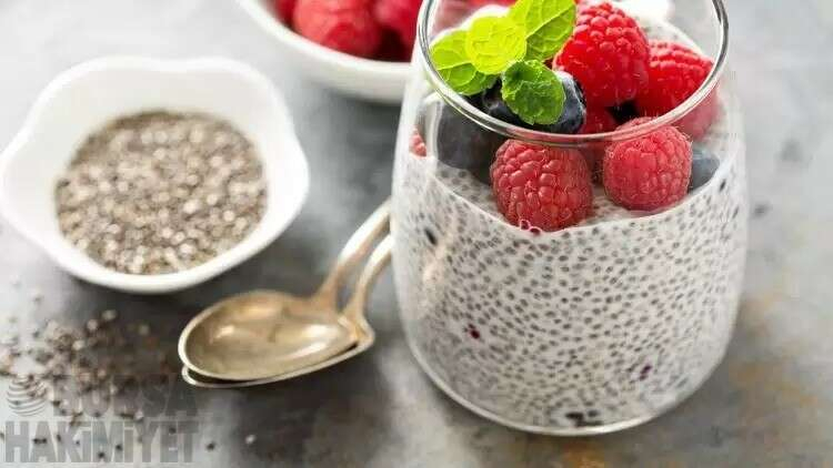 7- CHİA TOHUMLU PUDİNG Chia tohumları omega-3 yağ asitleri ile doludur. Omega-3 yağ asitlerinin yalnızca iltihabı azaltmaya yardımcı olmakla kalmayıp, aynı zamanda cildin nemini korumasına da yardımcı oluyor. Cildin dolgun ve genç görünmesini sağlıyor. 2012'de yapılan bir araştırma, daha fazla omega-3 yağ asidi tüketmenin, yaşlanmayla birlikte azalan telomer hücrelerinin korunmasına yardımcı olduğunu ortaya çıkardı. Omega-3 ayrıca serbest radikallerin neden olduğu oksidatif stresi de azaltıyor.