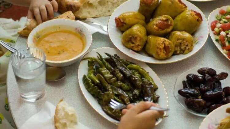 İftarda orucun su, zeytin veya hurmayla ile açılmasından sonra yemeğe biraz çorba ve salata ile başlanması öneriliyor. Devamında ise etli sebze, yağlı, ağır olmayan et yemeği, zeytinyağlı sebze yemeği, salata, söğüş, 1-2 dilim ekmek ya da küçük bir porsiyon pilav veya makarna besin tüketim önerileri arasında bulunuyor.
