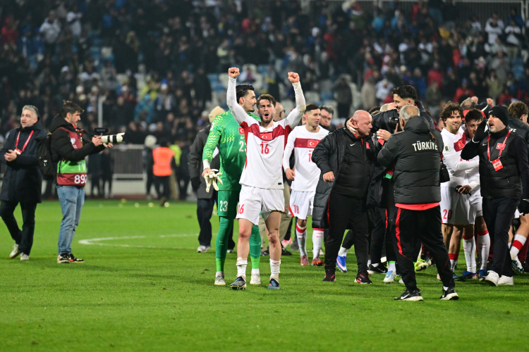 A Milli Futbol Takımı, deplasmanda karşılaştığı Kosova’yı 1-0 mağlup ederek Dünya Kupası'na katılma hakkı elde etti. Karşılaşmanın ardından ay-yıldızlı futbolcular ve teknik heyet büyük sevinç yaşarken, tarihi galibiyetin coşkusu sahaya yansıdı.