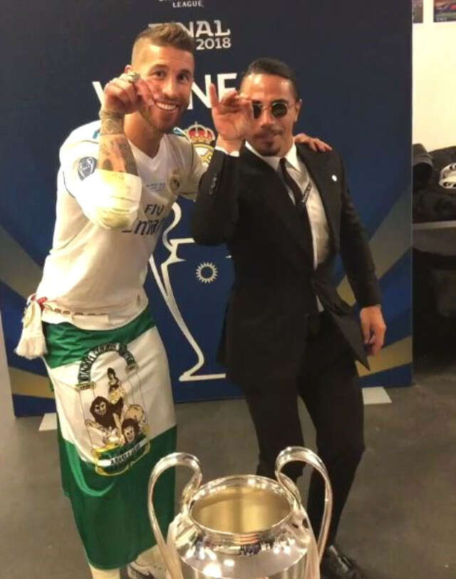 ŞAMPİYONLAR LİGİ KUPASINI TUZLADILAR Real Madrid'in İspanyol yıldızı Sergio Ramos ve Nusret, birlikte Şampiyonlar Ligi kupasını tuzladı.