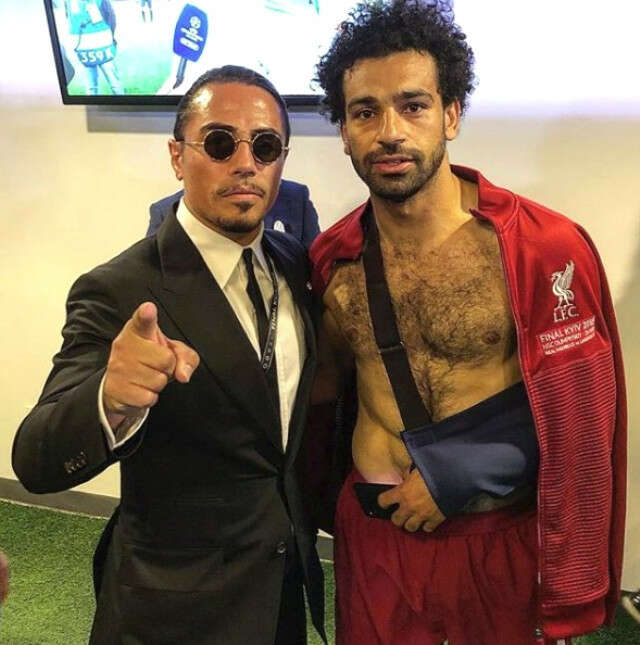 ÖNCE TEDAVİ SONRA HATIRA Final maçının henüz 30. dakikasında sakatlanarak oyundan çıkan Liverpool'un Mısırlı yıldızı Mohammed Salah, tedavisinin ardından Nusret ile birlikte poz verdi.