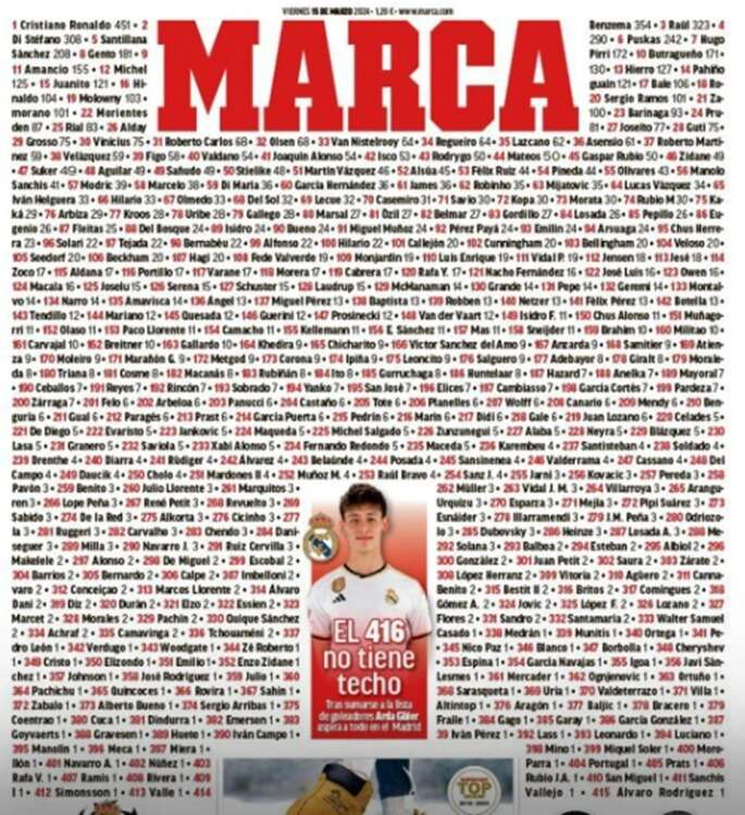 Real Madrid forması giyen Arda Güler Celta Vigo maçıyla kulüp tarihinde gol atan 416. futbolcu oldu.