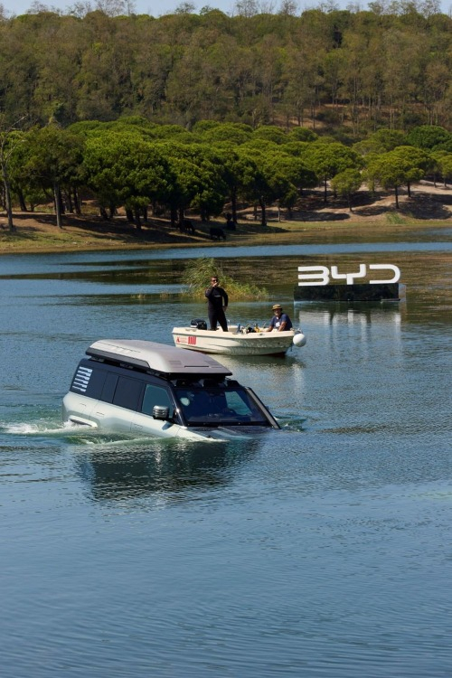 Karadan hareket ederek bölgedeki göle giren ve bir süre su üzerinde ilerledikten sonra platforma geri dönen YANGWANG U8, 360 derece Tank Dönüşü yeteneği ve entegre drone teknolojisiyle katılımcılardan tam not aldı.