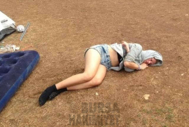 Festival kampının ortasında sızan genç kızımız.