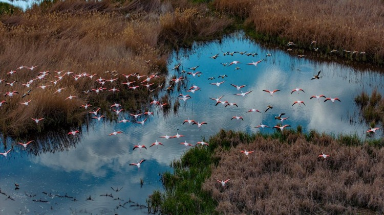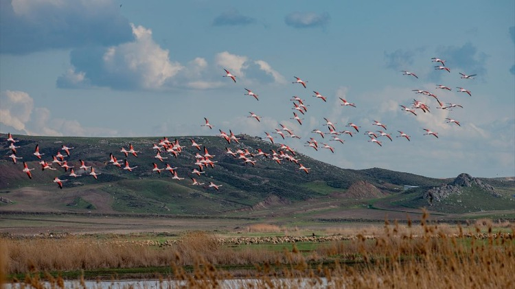 Her yıl göç dönemlerinde bölgeye gelen flamingolar, Gökçeören Köyü ve Setbaşı mevkisindeki sazlık ve sulak alanlarda gözlemlendi.