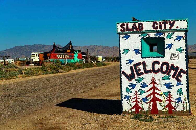 Slab City, ABD Kaliforniya'daki Slab City dünyanın son özgür kasabası olarak adını tanıtıyor. Bunun nedeni, bölgede yaşayanların genelde hippiler veya kaçaklar olması.