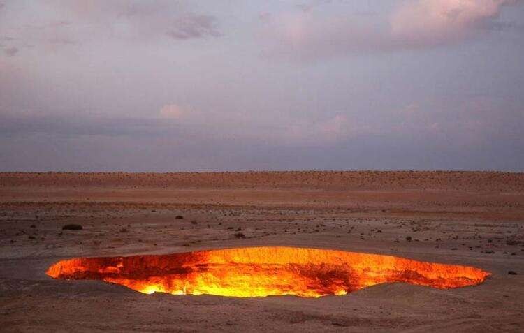 Cehennem Kapısı, Türkmenistan Bu doğal gaz kuyusundaki geniş kraterler asla yanmayı bırakmıyor. Cehennem Kapısı olarak isimlendirilen bu yer, bir çölün ortasında bulunuyor.