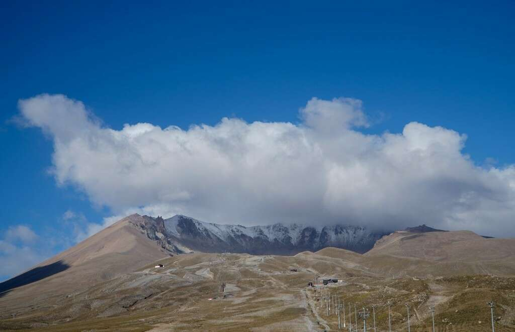 Mevsimin ilk yağışlarını alan Erciyes'in zirvesi beyaz örtüyle kaplandı.