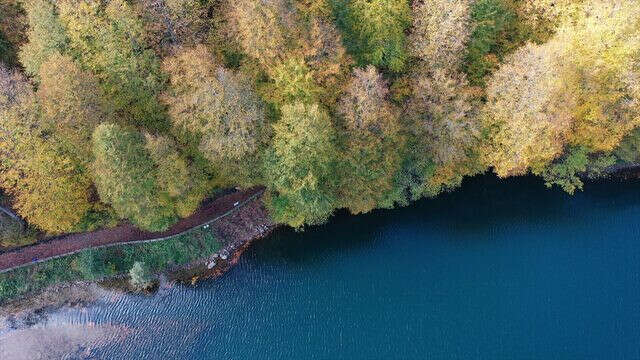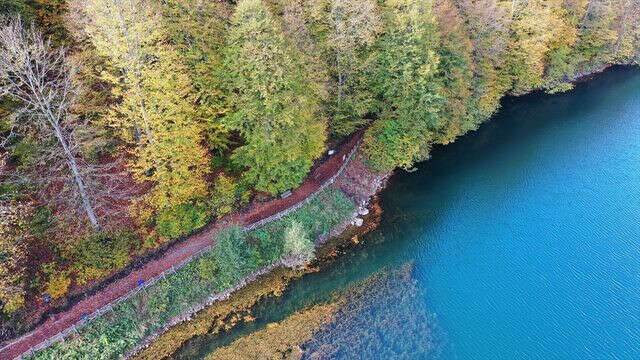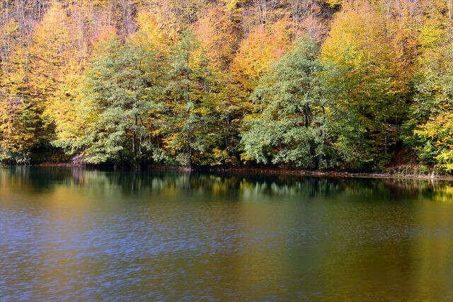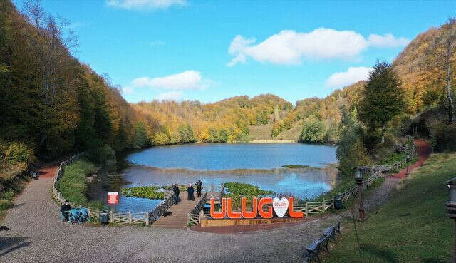 Ordu'nun Gölköy ilçesinde doğal güzelliği ile görenleri etkileyen Ulugöl'de, sonbaharla birlikte renk cümbüşü oluştu.