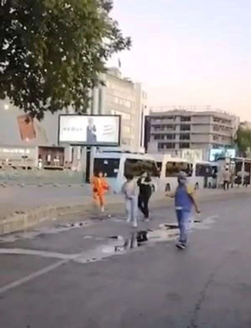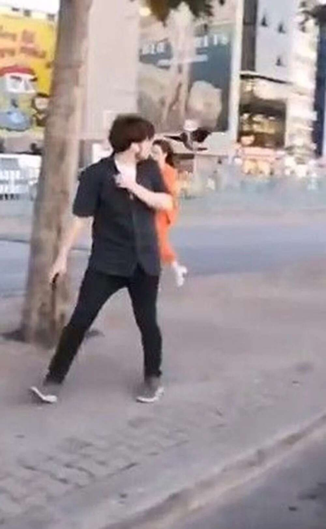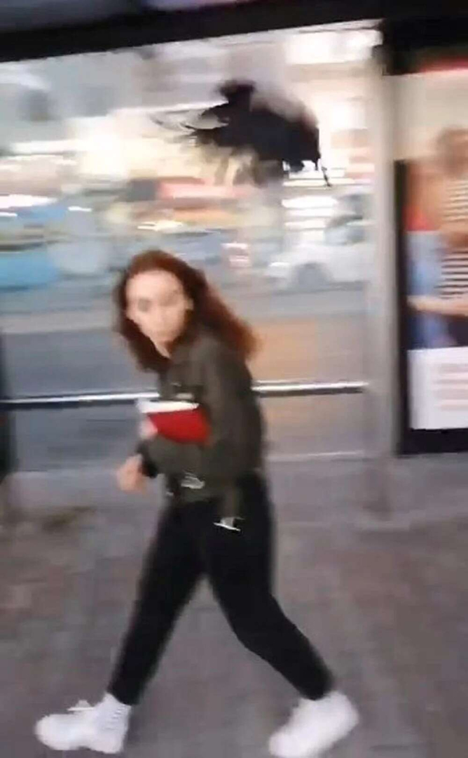 Yavru kargayı yol kenarına taşımak isteyenlere karga sürüsü saldırdı. Yavrularını korumak isteyen kargalardan kaçanlar, başlarını koruyarak caddeden uzaklaştı.