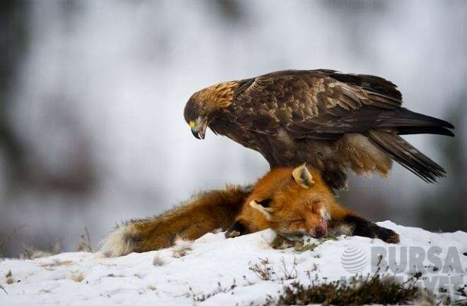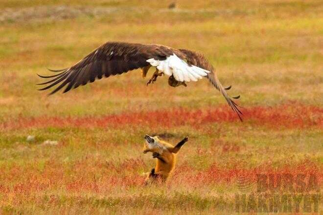 Kartallar yalnızca tilkilere değil, tilkilerin avladığı tavşanı da bazen av haline getirebiliyorlar.