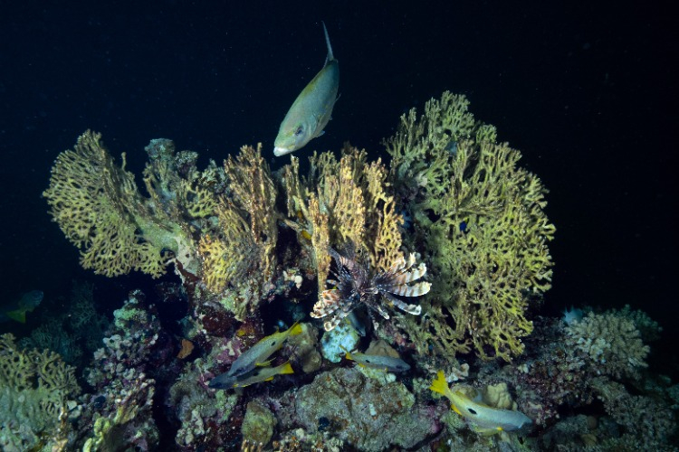 Dalışta iskorpit, ateş mercanı, müren balığı, aslan balığı, balon balığı, taş balığı ve papağan balığı gibi farklı türlerin yaşamları kayıt altına alındı.