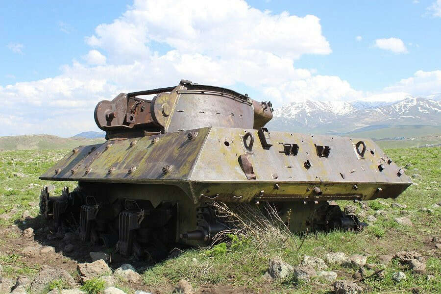 Birçok parçası askeriye tarafından alınan tankların gövdesi ise adeta arazide sergileniyor. Tankları dağların ortasında gören vatandaşlar ise fotoğraf çekilerek anı ölümsüzleştiriyor.