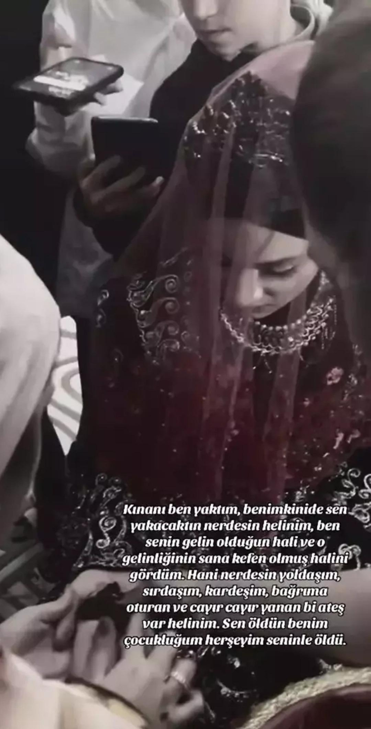 Diyarbakır’da 3 aylık hamile Helin Eren’in dini nikahla birlikte yaşadığı kişi tarafından öldürülmesinin ardından kına gecesi görüntüleri ortaya çıktı. “Gelinlik kefen oldu” paylaşımı yürek burktu.