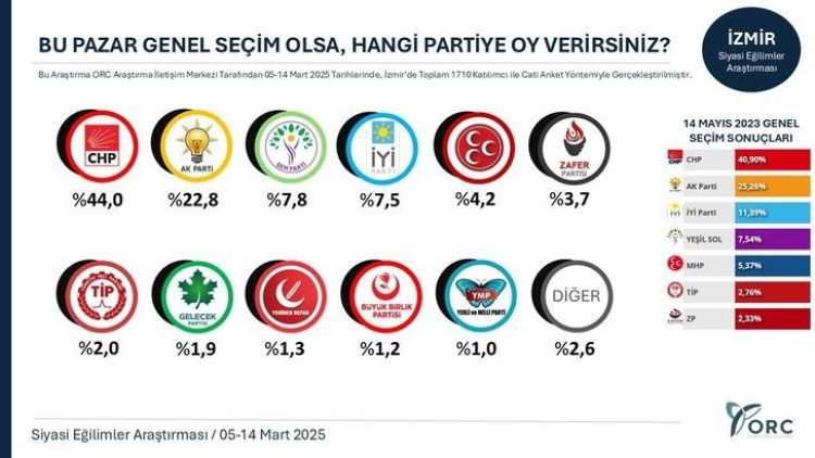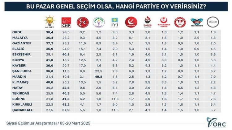 ORC Araştırma'nın verilerine göre İstanbul, Ankara ve İzmir dahil olmak üzere 16 ilde CHP ipi göğüsledi.