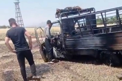 Adana’da saman balyası toplamak için tarlaya sokulan kamyonet, lastik kısmından alev alarak küle döndü.