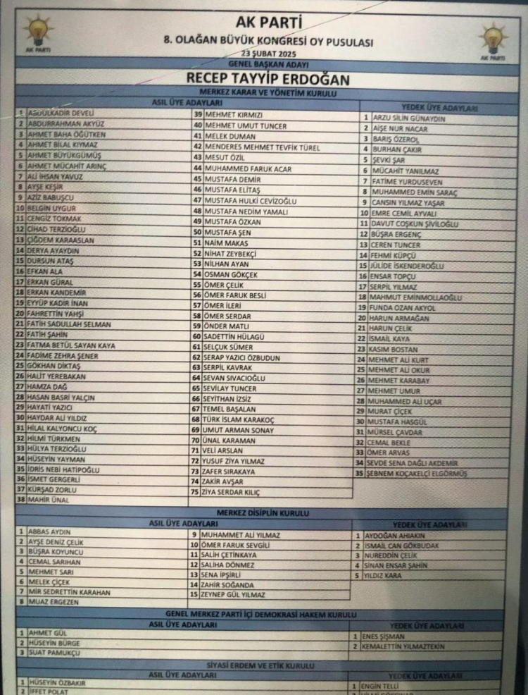Yeni MKYK listesi paylaşıldı. Kongrede 1607 delege oy kullanacak.