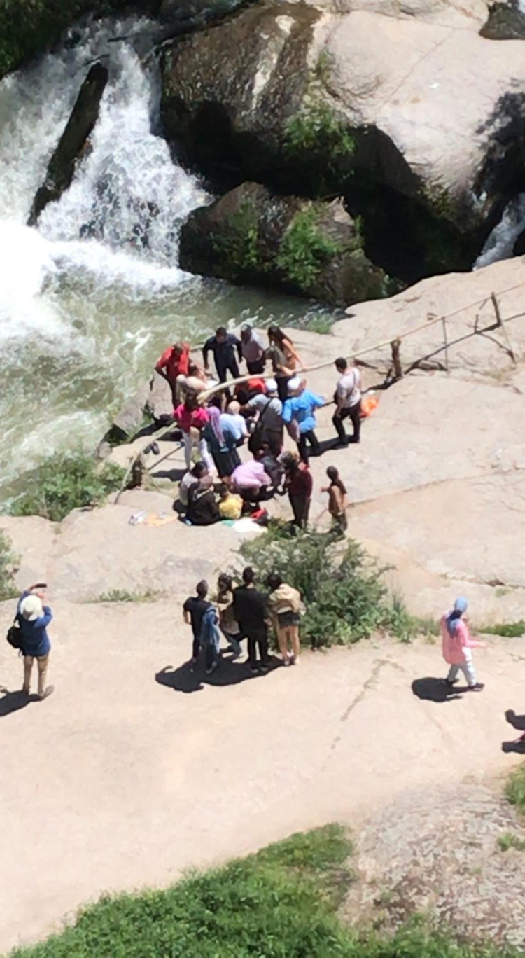 Aksaray'da Ihlara Vadisi'nden geçen Melendiz Çayı'nda fotoğraf çektirmek isteyen dede ve torunu suya düşerek yaralandı.