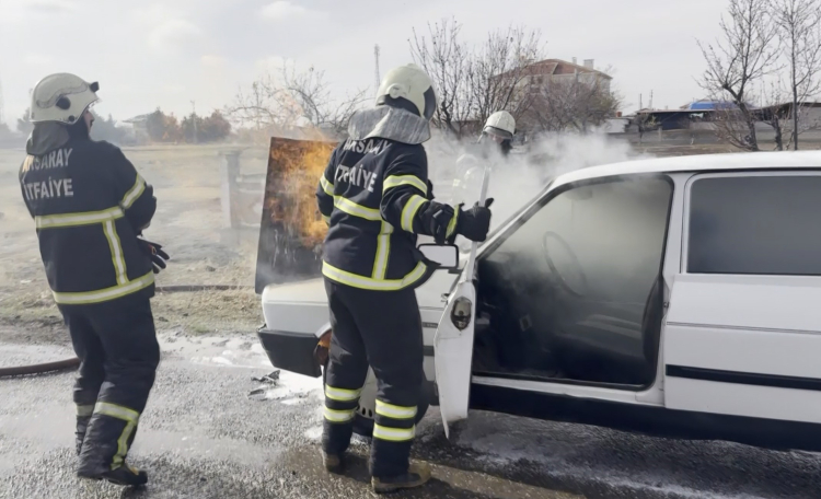 Aksaray'da seyir halindeki otomobilin motor kısmından alevler yükseldi