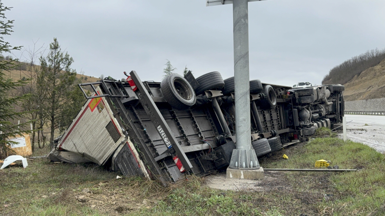 Almanya’dan Türkmenistan’a soğutucu taşıyan Polonya plakalı tırın Samsun’da devrilmesi sonucu meydana gelen kazada Türkmenistan uyruklu tır sürücüsü yaralandı.