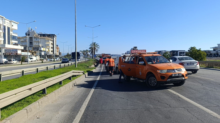 Kaza, Antalya - AlanyaD-400 Karayolu üzerinde yaşandı. Edinilen bilgiye göre, Antalya istikametinden Alanya istikametine seyir halindeki Göksel K.'nın kullandığı 07 CHH 373 plaka 07 BIJ 187 dorse plakalı lojistik firmaya ait tır Manavgat çevreyolu köprüsüne 250 metre mesafede Karayolları Bölge Müdürlüğü tarafından köprüde yapılacak çalışma nedeniyle yolda yönlendirme ve dubalama işlemi yapan, taşeron firmada çalışan Ali Andıç'a çarparak altına aldı. Kazan'ın ardından ihbar üzerine olay yerine Antalya Büyükşehir Belediyesi itfaiyesi Manavgat birimine ait kurtarıcı 112 sağlık ekipleri ve polis ekipleri sevk edildi.