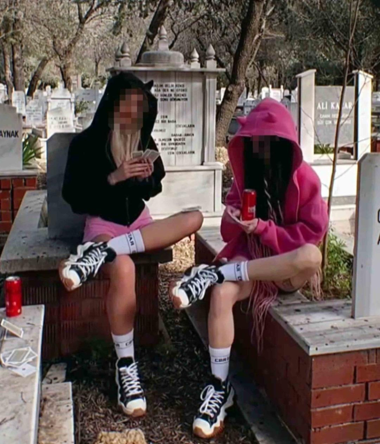 Antalya'nın Muratpaşa ilçesinde geçtiğimiz günlerde yaşanan olayda yabancı uyruklu iki genç kız, şehir merkezindeki bir mezarlıkta bulunan mezar taşlarının üzerinde iskambil oynayarak kola içti.