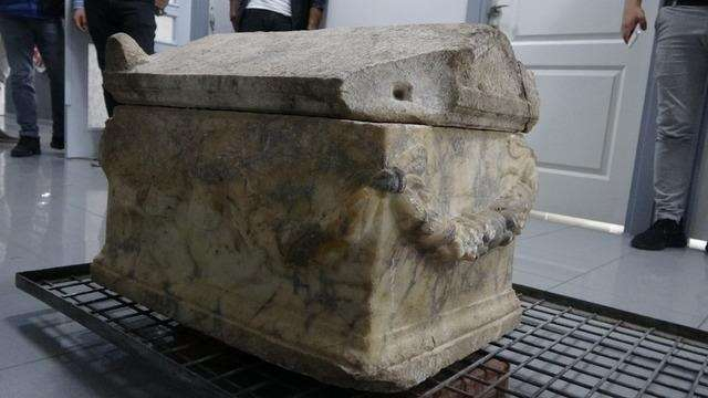 Yapılan aramada aracın bagajında halıya sarılı piyasa değeri 400 bin dolar olduğu değerlendirilen Roma dönemine ait bebek lahdi ele geçirildi.
